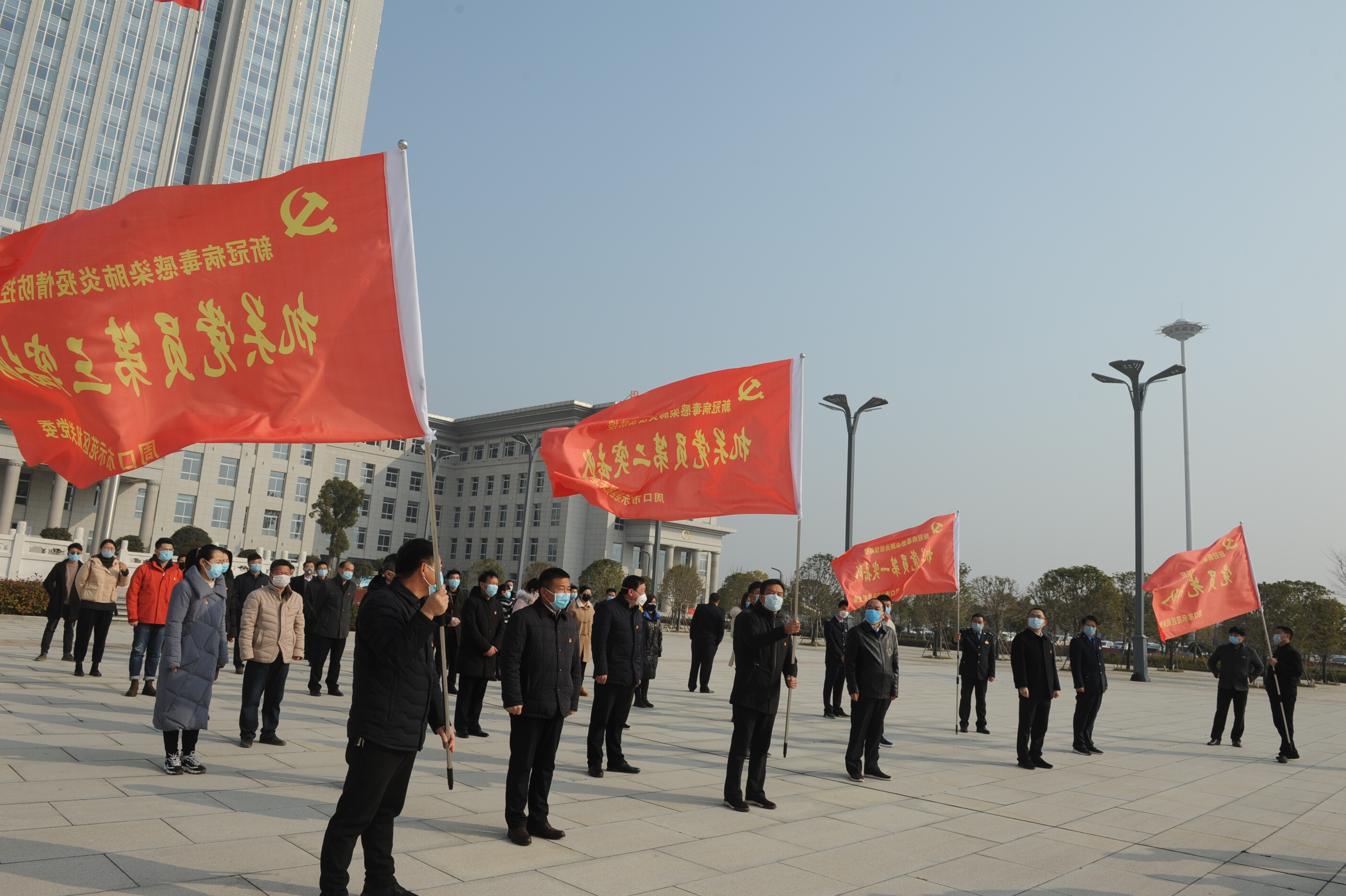 2月3日上午,在國旗下、黨旗前,示范區(qū)廣大黨員干部面對黨旗重溫入黨誓詞,充分展示了廣大黨員干部主動請戰(zhàn)到戰(zhàn)“疫”一線的決心和信心。隨后,區(qū)機(jī)關(guān)黨委相關(guān)領(lǐng)導(dǎo)向黨員先鋒隊和3個黨員突擊隊授予隊旗,希望他們堅守在一線、圓滿完成疫情防控的各項任務(wù)。
