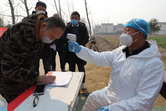 起初,苑統(tǒng)俊配合村干部在村里宣傳疫情防控政策、方法,1月25日,我省啟動一級應(yīng)急響應(yīng),港區(qū)迅速做出響應(yīng),在轄區(qū)內(nèi)各個村莊社區(qū)設(shè)置疫情監(jiān)控點,限制人員流動,全天候監(jiān)測進出人員身體狀態(tài)。苑統(tǒng)俊擔(dān)起監(jiān)控點村醫(yī)的職責(zé),負責(zé)該村一至四組的疫情防控。他每天騎電動車前往孫莊村監(jiān)測點值守,為過往人員測量體溫、觀察外地返鄉(xiāng)人員狀態(tài)、登記觀察正處在隔離期的從湖北、武漢返鄉(xiāng)人員體溫數(shù)據(jù),為鄉(xiāng)村干部開展防控工作提供技術(shù)支持。
