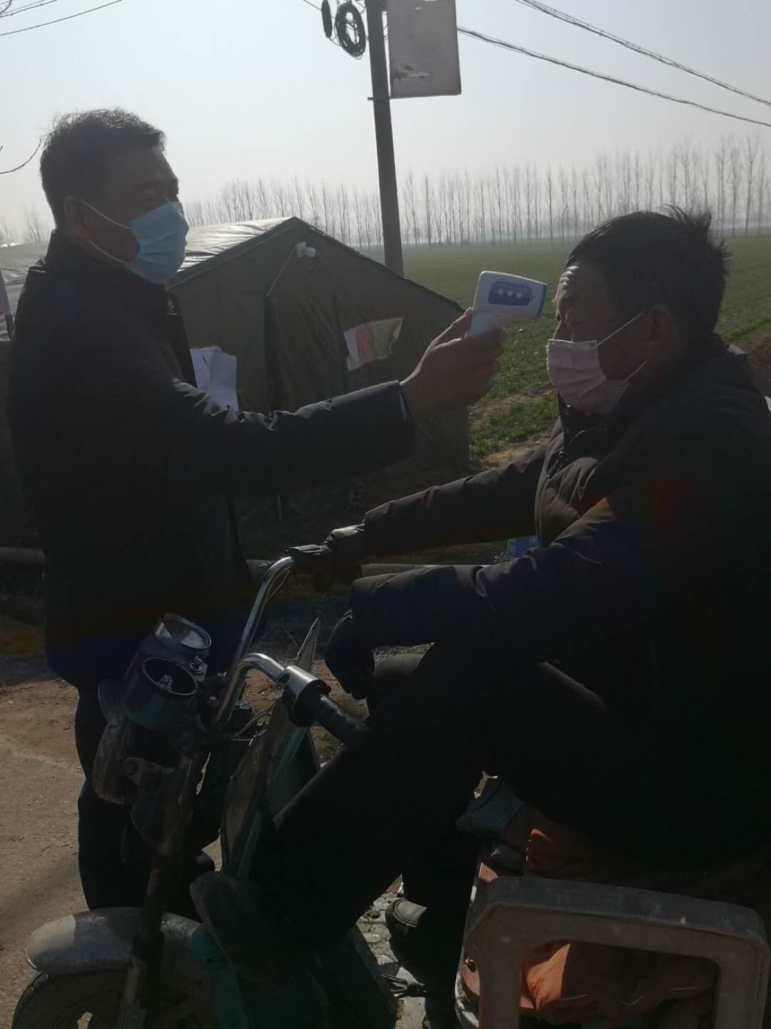 由于物資未曾到位,檢測(cè)點(diǎn)僅簡單搭了一頂四面透風(fēng)的帳篷,紀(jì)占東跟其他工作人員一起在寒風(fēng)中檢查登記出入人員、測(cè)量體溫,天氣寒冷,吃飯也只能用饅頭、泡面對(duì)付,但是內(nèi)心是火熱的。紀(jì)占東說在防控工作中,絕大部分群眾理解和支持的,有群眾在家里燒好開水給值班人員送,還有的群眾送來暖手寶、熱氣騰騰的飯菜......這些都是他工作的動(dòng)力和源泉。