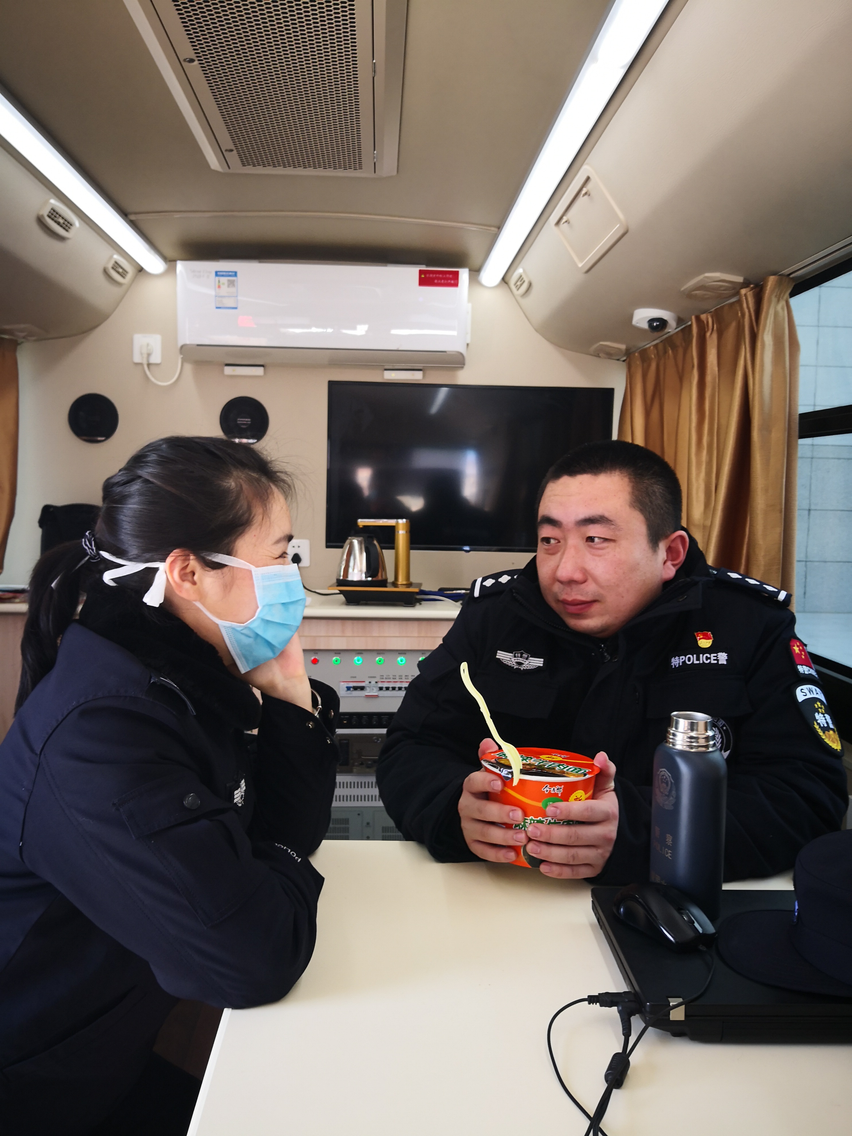 “給你送的晚了,餓壞了吧”,2月12日中午1時許,剛整理完手頭工作的扶溝縣公安局宣傳科民警閆曉鳳急忙趕到高鐵站,給正在執(zhí)勤的愛人王博送去一桶泡面。