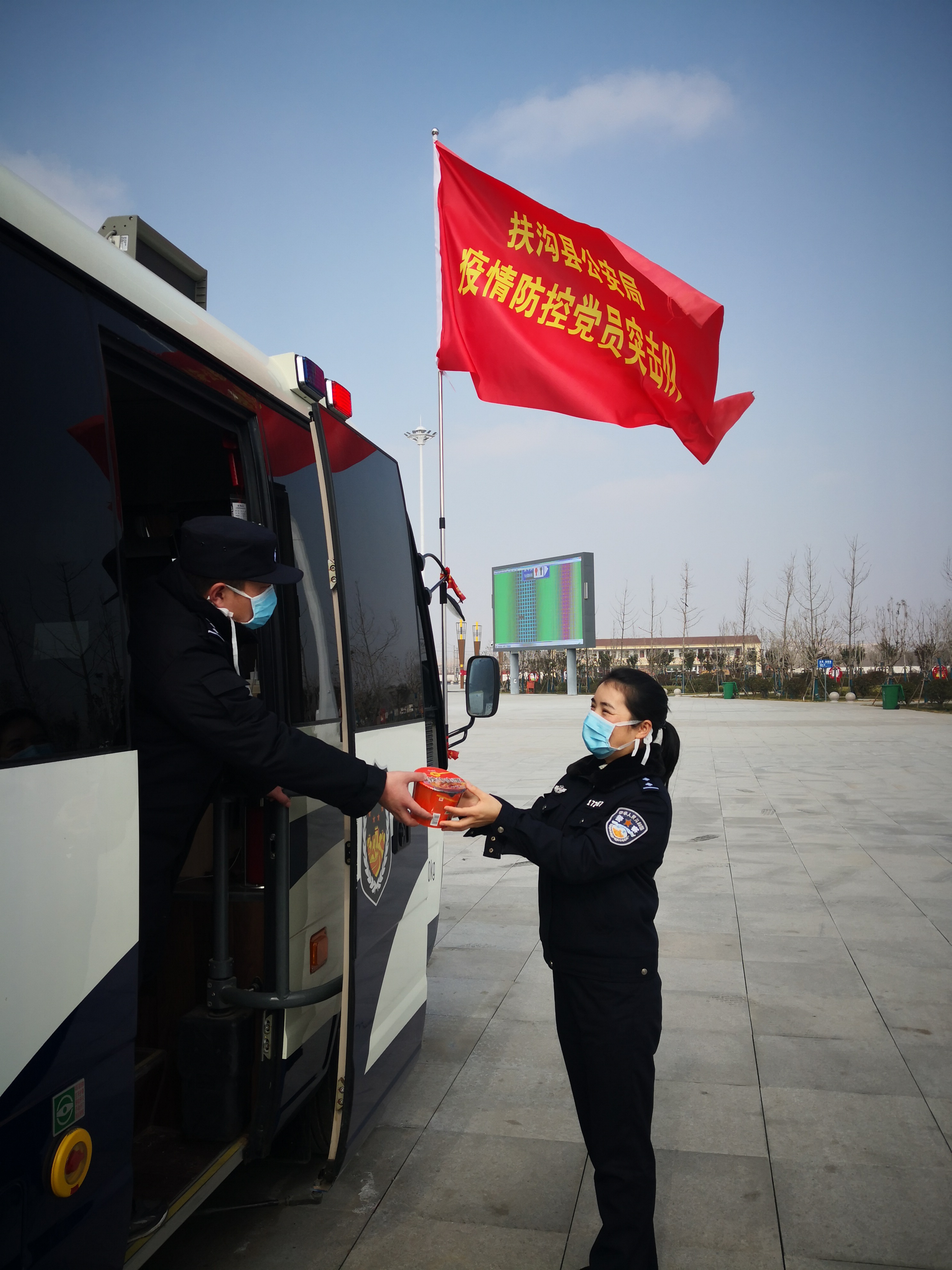 2020年的春節(jié)非比尋常,新冠病毒疫情在中華大地肆虐橫行,扶溝縣公安局黨委審時度勢,號召全體民警全員上崗,眾志成城,抗擊疫情。王博和閆曉鳳在疫情防控的關(guān)鍵時期,他們并肩作戰(zhàn)、相互鼓勵,舍小家顧大家,和戰(zhàn)友們一同投入到防控疫情的第一線。