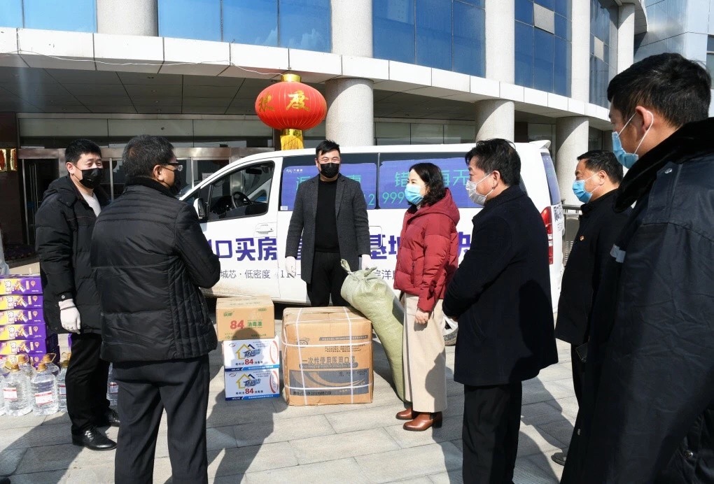 2月11日上午,周口市萬基房地產(chǎn)發(fā)展有限公司向開發(fā)區(qū)抗疫一線捐贈物資。開發(fā)區(qū)黨委委員、管委會副主任谷靜及辦公室、衛(wèi)健委等部門負(fù)責(zé)同志參加捐贈儀式。
