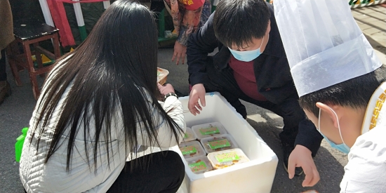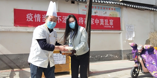 2月22日中午,川匯區(qū)小橋辦事處高莊社區(qū)疫情防控值勤卡點迎來盛世宴賓樓的大廚們,他們帶著熱騰騰的午餐前來慰問值勤人員,為抗疫一線工作者改善伙食。盛世宴賓樓負責人智廣旭告訴記者,社區(qū)疫情防控工作緊張忙碌,他好幾次看到值勤卡點的工作人員用方便面對付一日三餐,心里很感動也很難受,所以飯店決定在疫情結束之前連續(xù)贈送午餐晚餐,“讓社區(qū)卡點的同志吃好點”。