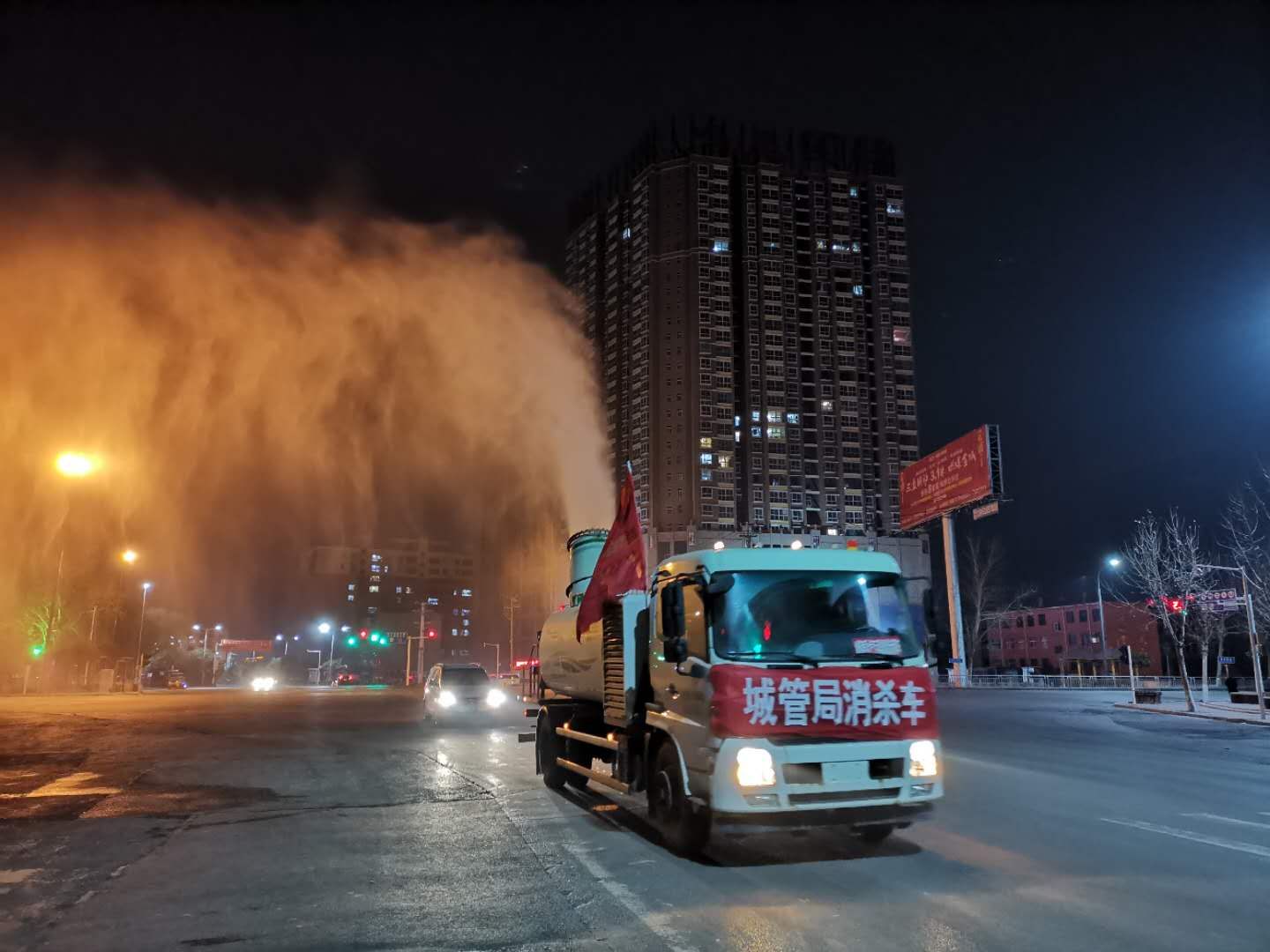 “疫情不滅,我們不休”,3月1日(星期天)在仙臺路消殺現(xiàn)場環(huán)衛(wèi)管理員張冬冬說。當天在仙臺路、芙蓉街等路段,縣城市管理局的環(huán)衛(wèi)工人利用熱煙霧機及肩背超低容量噴霧器等衛(wèi)生消殺器械,加班加點對沿街道路、門店、公廁、垃圾箱、垃圾桶、垃圾中轉站等公共區(qū)域和疫情防控卡點、超市門口等公共場所噴灑消毒劑開展環(huán)境衛(wèi)生消殺。