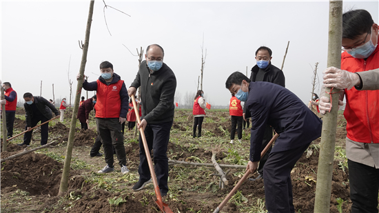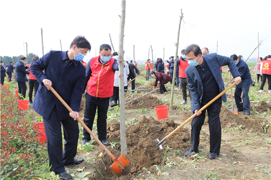 三埋土、兩踩實(shí)、一提根……三川大地春潮涌,植樹(shù)造林正當(dāng)時(shí)。3月12日上午,鄲城縣四個(gè)班子領(lǐng)導(dǎo)崔衛(wèi)國(guó)、李建軍、王偉等和廣大志愿者、群眾一起來(lái)到皇姑河畔義務(wù)植樹(shù)現(xiàn)場(chǎng),揮鍬鏟土,栽植新綠,為鄲城大地再添一片綠意。