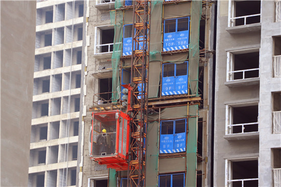 當(dāng)日上午,記者在施工現(xiàn)場看到,樓體外部,工人們隨著升降吊籃的上下正在緊張有序地進(jìn)行外墻保溫施工;樓體內(nèi),工人們正在進(jìn)行內(nèi)墻的粉刷及水泥地板的鋪設(shè),里里外外一派忙碌的景象。
