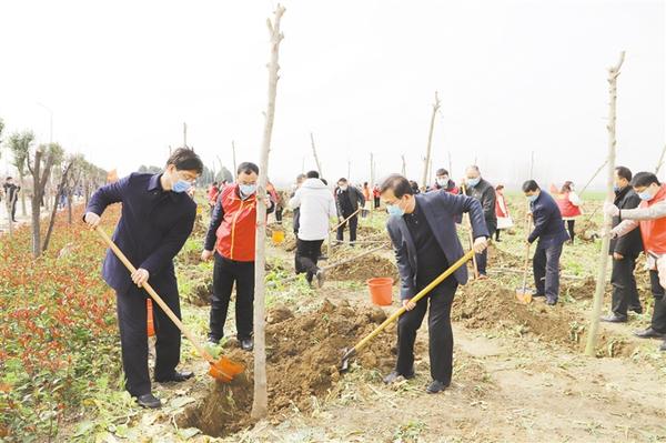 三埋土、兩踩實、一提苗……陽春三月,豫東大地植綠正當時??h領導崔衛(wèi)國、李建軍、王偉等和廣大志愿者、群眾一起揮鍬鏟土,栽植新綠,為鄲城大地再添綠意。