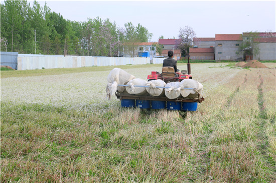 4月15日,河南省鹿邑縣谷陽辦事處張辛行政村五里廟自然村種植的近百畝蒲公英進(jìn)入種子收獲期,該村黨支部書記張正濤及時組織人力,在做好疫情防控的同時,抓緊時機(jī)進(jìn)行采收。除種植蒲公英外,該村還引導(dǎo)農(nóng)戶開展葡萄、草莓等果蔬種植、牡丹、艾草等中藥材種殖,希望通過特色種植讓村民在家門口實(shí)現(xiàn)就業(yè)增收,帶動貧困九日早日脫貧致富。(記者 李瑞才 攝)