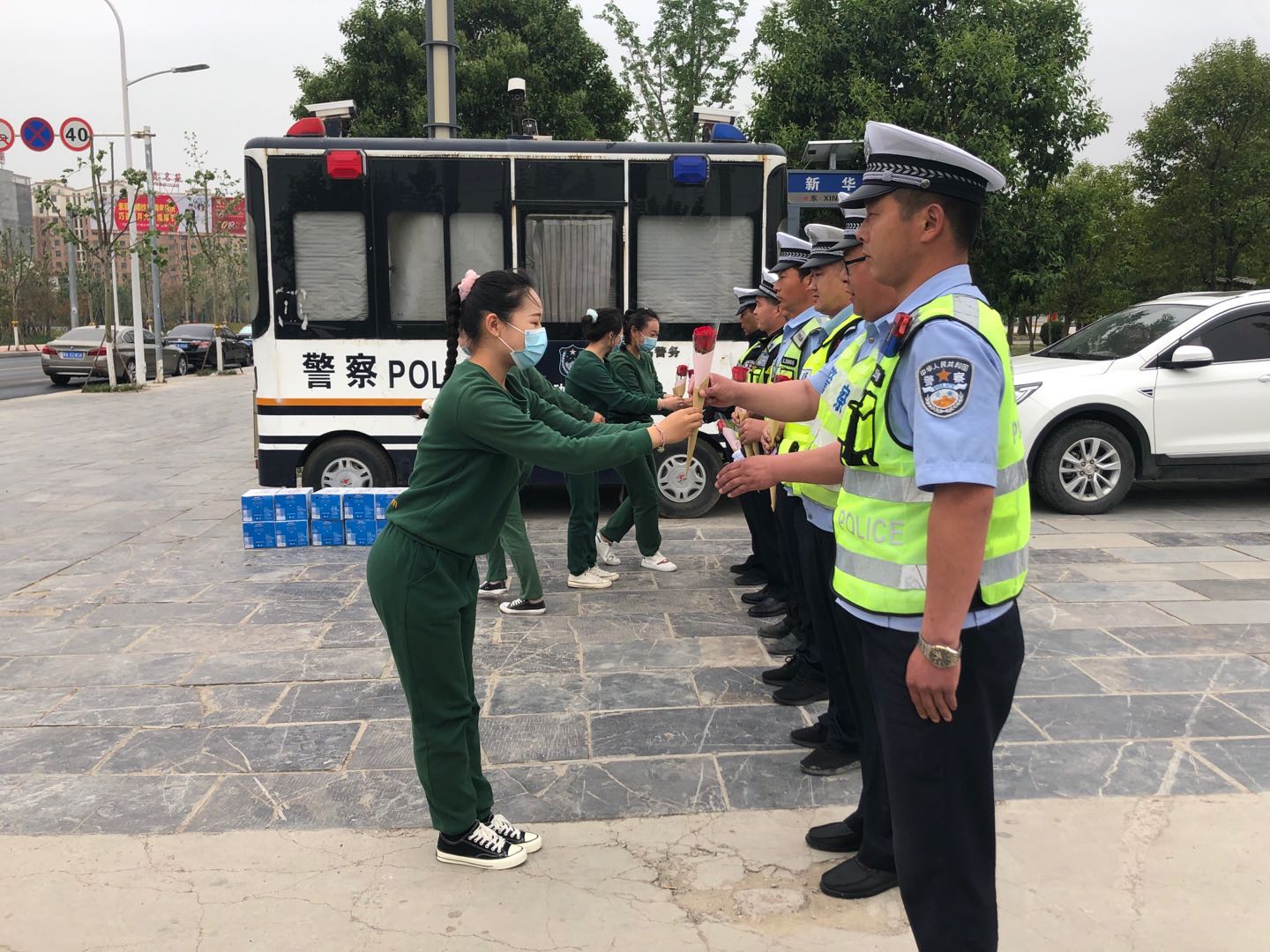 慰問期間,教師們?yōu)楦兄x鄲城交警辛勤的付出,為他們送上錦旗、鮮花和自編的舞蹈,充分表達(dá)對一線執(zhí)勤交警堅(jiān)守崗位、不辭勞苦、敬業(yè)奉獻(xiàn)精神的敬意。
