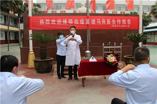為彰顯榜樣力量,傳承抗“疫”精神,5月6日,項城市文化路小學邀請項城援鄂抗“疫”英雄代表項城市中醫(yī)院脾胃肝膽科護士馬良來校為廣大師生作報告,講述戰(zhàn)“疫”背后的故事,厚植愛國主義情懷。