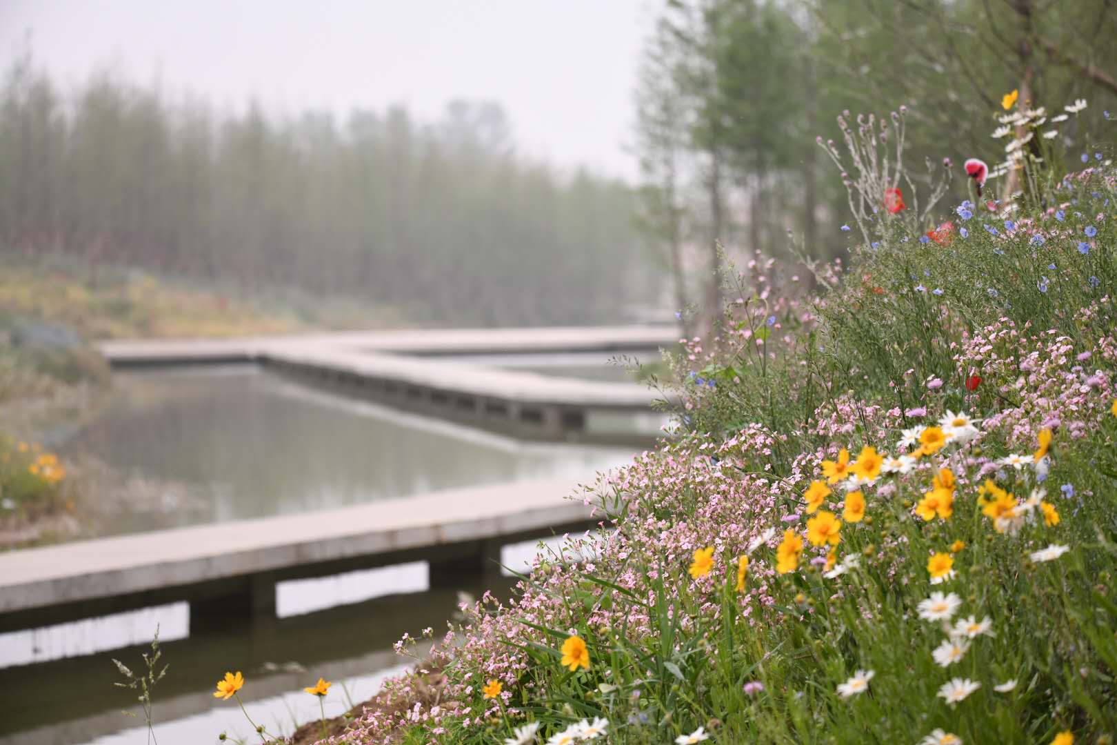 近日,位于周口市城鄉(xiāng)一體化示范區(qū)的引黃調(diào)蓄工程迎來今年第一次蓄水,蓄水后的湖面更加廣闊,一片煙波浩渺,湖邊覆蓋著綠樹花草,宛如江南水鄉(xiāng)小景,格外美麗。 記者 梁照曾 攝