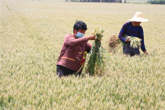 “今年共繁育良種小麥‘冠麥1號、中農(nóng)4007’兩個品種,這兩個品種的特點就是產(chǎn)量高、抗災(zāi)能力強(qiáng)?!睏椉r(nóng)場副場長趙云霄介紹,我們要做的工作就是徹底清除田間雜株、雜草、雜穗、大麥、燕麥,以保證小麥良種純度。小麥去雜提質(zhì)對種子安全、糧食質(zhì)量保障是非常重要的一環(huán),目前只能依靠人工去雜,經(jīng)過兩次去雜提純后,第一代良種即將迎來豐收,預(yù)計今年畝產(chǎn)將達(dá)到1200斤。