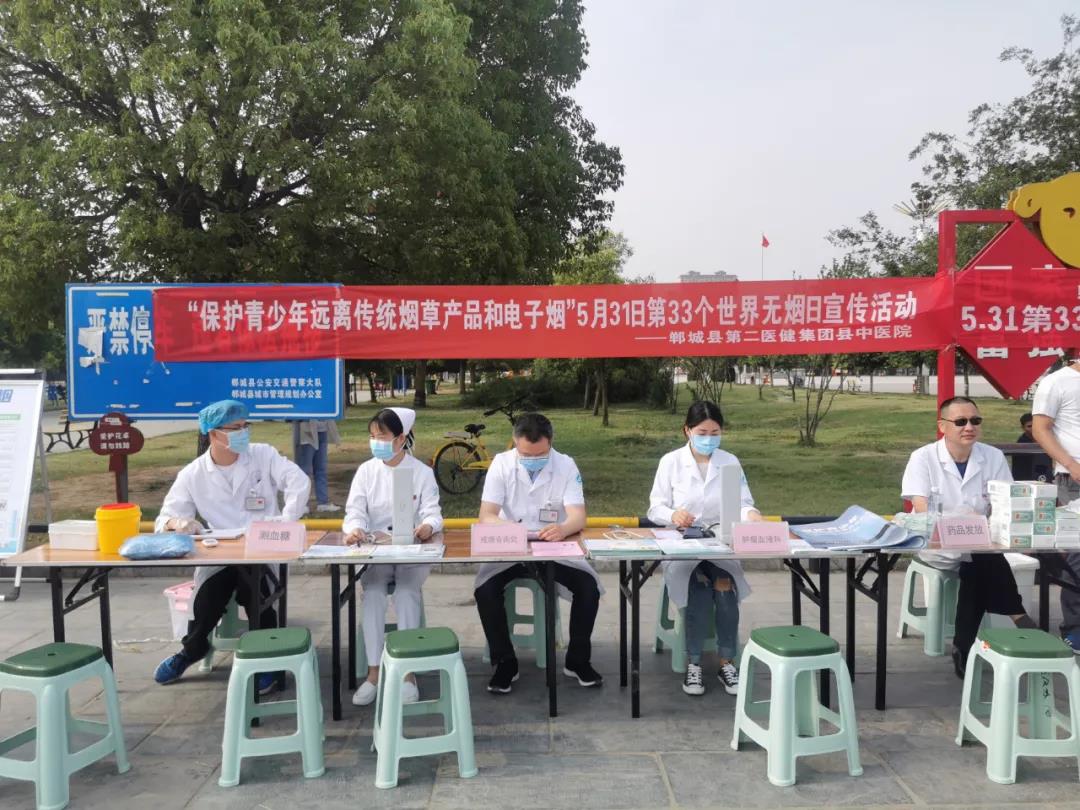 今年5月31日是第33個世界無煙日,本次主題是“保護青少年遠離傳統(tǒng)煙草產(chǎn)品和電子煙”。5月30日上午,鄲城縣第二醫(yī)療健康服務(wù)集團縣中醫(yī)院在世紀廣場開展了義診宣傳活動,進一步加強煙草危害和控煙政策宣傳,科學引導青少年樹立拒絕傳統(tǒng)煙草產(chǎn)品和電子煙的健康理念,遠離煙草危害,保護青少年身心健康。
