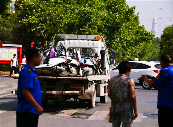 從今天開始,周口中心城區(qū)創(chuàng)衛(wèi)按下"嚴(yán)管健”,其中由城管部門嚴(yán)查電動車逆行、車輛亂停亂放,是規(guī)范城市管理重要一項,逆行者將被暫扣電動車,并接受教育和處罰。6月1曰上午,記者在周口大道和慶豐街交叉口看到,不少電動車騎行者不按規(guī)定行駛,逆行中被查,暫扣車輛被統(tǒng)一拉走,逆行者將接受和處罰。