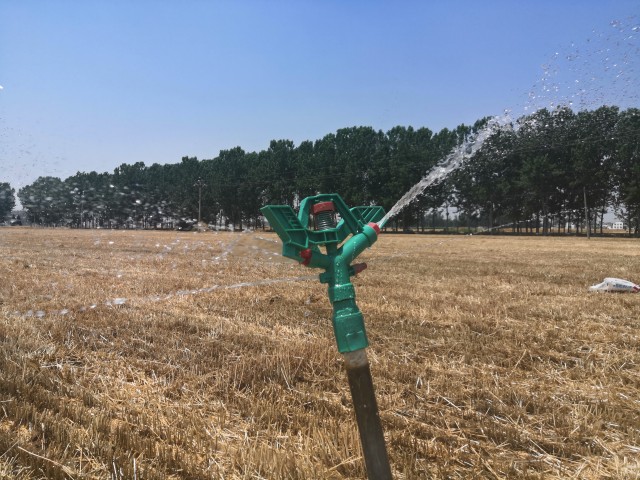 這塊地離村莊較遠(yuǎn)。放在前幾年,澆水灌溉是個(gè)麻煩事。用電機(jī)澆水需要布設(shè)臨時(shí)電線,但是長(zhǎng)距離拉電線,一來(lái)很麻煩,二來(lái)不安全。如果用燃油機(jī)器帶動(dòng)水泵澆水,燃油成本增加不說(shuō),安裝調(diào)試笨重的機(jī)器也往往得好一陣兒折騰。
