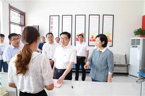 郭成全一行先后到巴集鄉(xiāng)段寨行政村文化活動(dòng)展示中心、便民服務(wù)中心、縣電子商務(wù)公共服務(wù)中心、好多肉農(nóng)業(yè)科技園、天豫薯業(yè)種苗繁育基地、汲冢鎮(zhèn)謝寨行政村新時(shí)代文明實(shí)踐站、扶貧車間、愛心超市、標(biāo)準(zhǔn)化衛(wèi)生室等地,實(shí)地查看抓黨建促脫貧、產(chǎn)業(yè)發(fā)展、鄉(xiāng)賢文化、鄉(xiāng)村文明建設(shè)、村務(wù)公開、電商扶貧、企業(yè)帶貧等情況,聽取我縣脫貧攻堅(jiān)工作開展情況匯報(bào),對(duì)該縣以黨建為引領(lǐng)高質(zhì)量推進(jìn)脫貧攻堅(jiān)工作所取得的成效給予充分肯定。