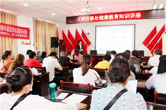 18日下午, “健康周口行 大醫(yī)獻(xiàn)愛心”健康教育志愿服務(wù)隊(duì)?wèi)?yīng)邀走進(jìn)川匯區(qū)人和辦事處,為干部職工和轄區(qū)居民作了《保持健康生活方式、掌握幸福長(zhǎng)壽鑰匙》講座。講座現(xiàn)場(chǎng),來(lái)自周口市中心醫(yī)院心內(nèi)四科的劉華玲主任利用ppt課件,分別從健康基本知識(shí)和理念、健康生活方式與行為及健康基本技能做了詳細(xì)分析講解,圍繞健康四大基石,結(jié)合群眾常見健康知識(shí)誤區(qū),對(duì)所講內(nèi)容進(jìn)行總結(jié)概括,進(jìn)一步加深了轄區(qū)居民對(duì)健康素養(yǎng)知識(shí)的理解。同時(shí),結(jié)合真實(shí)病例,深入淺出地為大家講解了高血壓的基本概念、分類、高血壓治療原則和目標(biāo)、難治性高血壓的處理等,重點(diǎn)強(qiáng)調(diào)了高血壓常見危險(xiǎn)因素及預(yù)防措施。