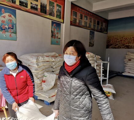董君蓮還組織公司員工積極配合政府的工作安排,除了每天對廠區(qū)進(jìn)行消毒外,在工廠門口設(shè)立疫情防控卡點(diǎn)。她一邊為前來采購面粉的老百姓做好信息登記、測量體溫、酒精消毒并檢查是否佩戴口罩,一邊給老百姓宣傳疫情防控知識(shí),幫老百姓抬面粉送車上,她講最多的一句話就是“要相信黨委政府,在共產(chǎn)黨的領(lǐng)導(dǎo)下,在咱老百姓的共同努力下,一定能早日勝利打贏抗擊疫情阻擊戰(zhàn)!”
