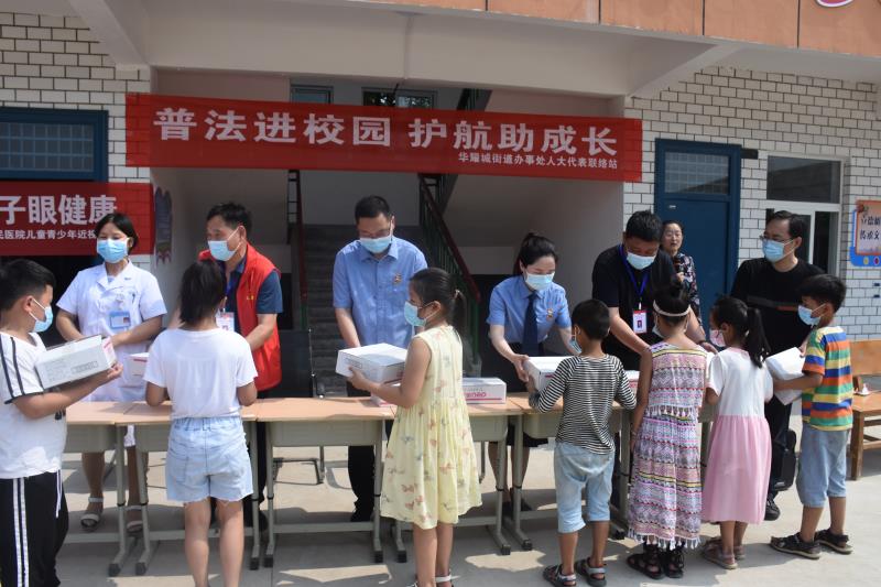 華耀城街道辦事處人大代表聯(lián)絡(luò)站為了鼓勵學生們好好學習,為每一名學生送去了學習用品。并以此次活動為契機,深入開展普法和愛眼護眼活動,著力營造濃厚的法制學習氛圍,為青少年的健康成長保駕護航。