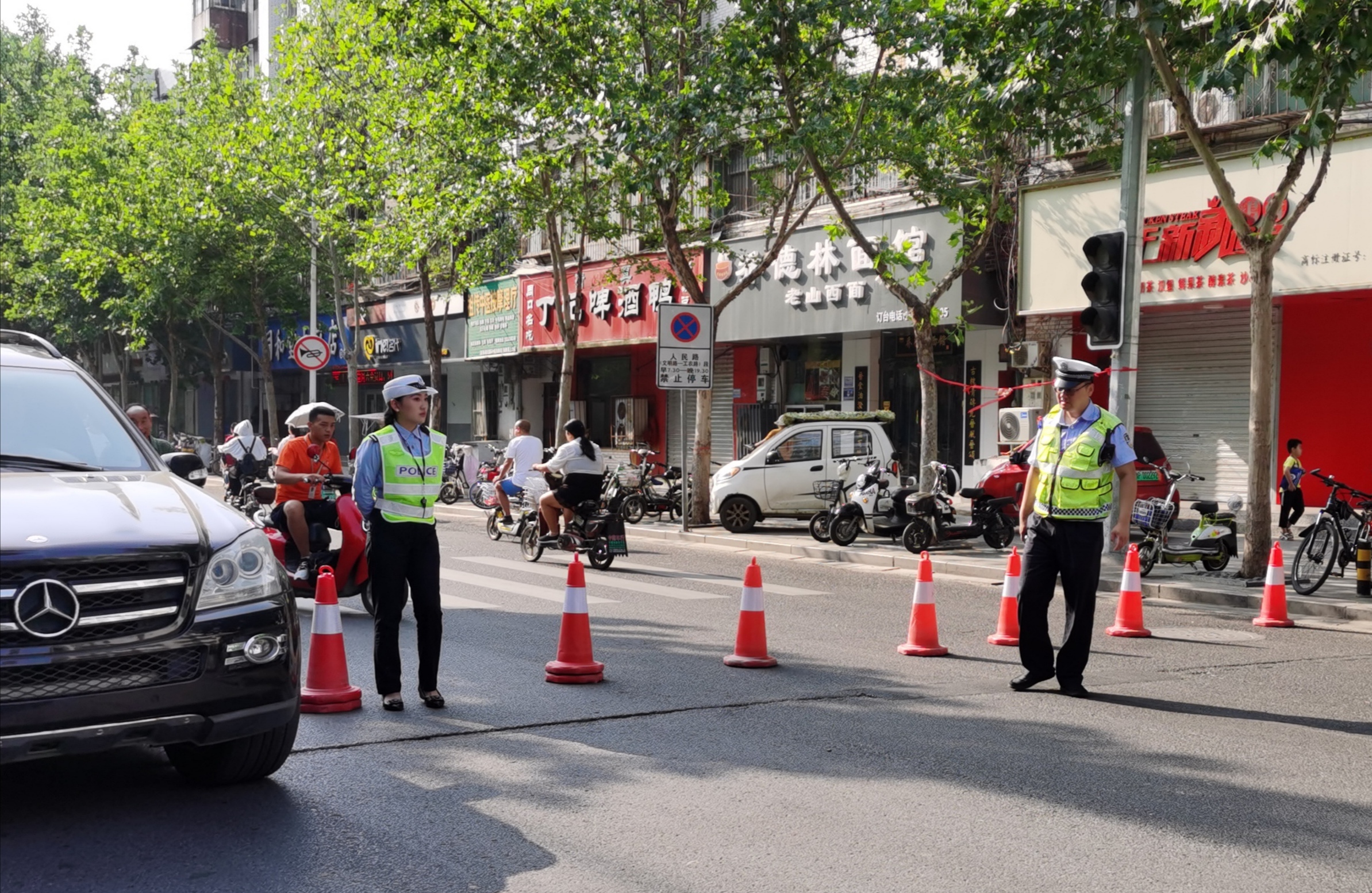考試期間,值班警察在各考點路口設(shè)崗