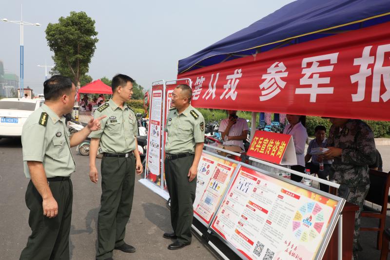 高考期間,淮陽區(qū)人武部在轄區(qū)6個(gè)考場所在學(xué)校門口設(shè)立征兵宣傳站,向考生和家長進(jìn)行見縫插針式的征兵宣傳。宣傳現(xiàn)場,“參軍報(bào)國盡義務(wù),熱血青年競風(fēng)采”“當(dāng)兵最光榮、軍人最美麗”等宣傳標(biāo)語格外引人注目,內(nèi)容豐富的征兵宣傳展板一字排開,《參軍入伍明白卡》《大學(xué)新生應(yīng)征入伍宣傳單》等征兵宣傳資料擺放在咨詢臺上一目了然,吸引了眾多的考生和家長駐足觀看,圍著咨詢臺詢問有關(guān)征兵事宜。