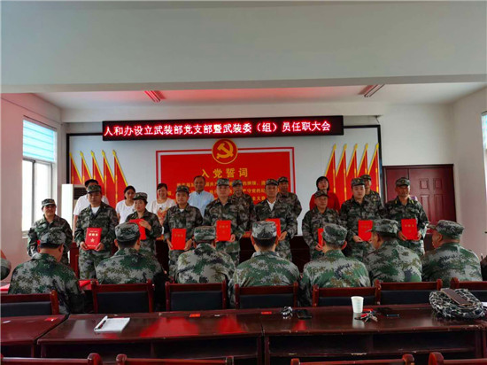本次大會(huì)確定在人和辦武裝部建立1個(gè)黨支部,人和辦武裝部長王超任黨支部書記,在轄區(qū)9個(gè)社區(qū),每個(gè)社區(qū)建立1個(gè)3人黨小組,黨小組成員包括在該社區(qū)設(shè)置的1名兼職武裝委員和在該社區(qū)基本單元網(wǎng)格設(shè)置的2名兼職武裝組員。每個(gè)黨小組編入人和街道武裝部黨支部,并報(bào)區(qū)人武部備案,制定任命證書。