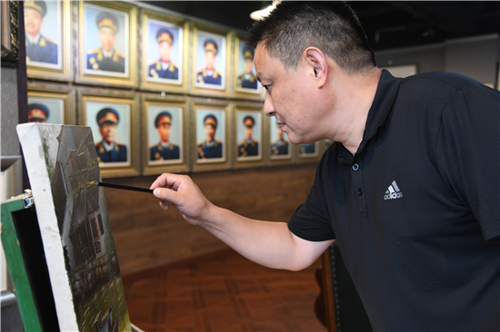 走進毗鄰周口市區(qū)的張一油畫工作室,一股墨香迎面撲來。讓人眼前一亮的是畫室四周掛滿的人物肖像,特別是南面墻上的一組開國將帥肖像畫尤為引人注目。將軍們威武雄健,或凌厲或威嚴的眼神讓人回想起他們那個戎馬倥傯、戰(zhàn)火紛飛的年代。