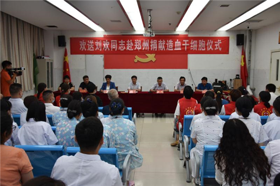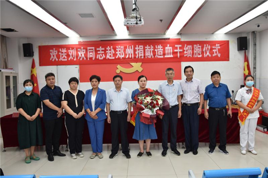 “作為一名醫(yī)務(wù)人員,能為患者帶來(lái)生的希望,無(wú)論如何我都不會(huì)拒絕。希望捐獻(xiàn)后那位患者能早日康復(fù),投入新生活……” 7月22日上午,在西華縣中醫(yī)院會(huì)議室舉行的劉歡同志赴鄭州捐獻(xiàn)造血干細(xì)胞歡送儀式上,這位來(lái)自該院骨科護(hù)士長(zhǎng)的一番話贏得現(xiàn)場(chǎng)陣陣掌聲。市紅十字會(huì)常務(wù)副會(huì)長(zhǎng)毛立營(yíng),市紅十字會(huì)秘書長(zhǎng)高春,西華縣委副書記郭峰,西華縣人民政府副縣長(zhǎng)、紅十字會(huì)會(huì)長(zhǎng)張翠霞,西華縣衛(wèi)健委副主任胡濤,西華縣中醫(yī)院院長(zhǎng)高彥博等出席歡送儀式。