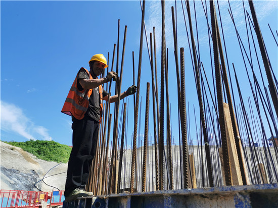 夏日豫東,驕陽(yáng)似火。8月3日,在中交二航局沈丘沙潁河航道升級(jí)改造工程節(jié)制閘施工現(xiàn)場(chǎng),工人們頂烈日,戰(zhàn)酷暑,趕工期,力爭(zhēng)早日打通水上交通大動(dòng)脈,助力周口“滿城文化半城水,內(nèi)聯(lián)外通達(dá)江海”中原港城建設(shè)。圖為工人們?cè)谝韷﹁徝?、閘堆鋼筋綁扎。