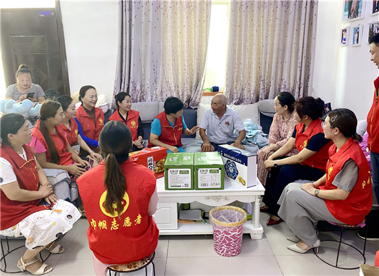 當日下午,志愿者及愛心商家一行20多人,在駐村干部及村支部書記陪同下,來到遲營鄉(xiāng)順河村走訪慰問退伍老兵和老黨員,為他們送去豆奶、八寶粥、飲料、糕點等慰問品。大家不顧酷暑高溫天氣,走村入戶,一家一家地走訪,為退伍老兵送去節(jié)日的問候,聆聽老兵講述那艱苦卓絕的戰(zhàn)爭和轟轟烈烈社會主義建設的歲月,讓他們感受到黨和政府及社會的關(guān)懷關(guān)愛,受到好評。