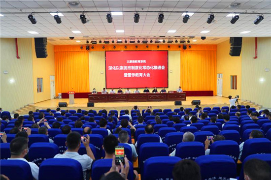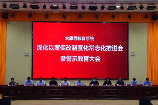 為深入貫徹落實(shí)縣委以案促改工作部署要求,8月6日上午,太康縣教育系統(tǒng)召開深化以案促改制度化常態(tài)化推進(jìn)會(huì)暨警示教育會(huì)??h政府黨組成員、教體局黨組書記張俊峰、縣紀(jì)委副書記、監(jiān)委副主任謝康全、紀(jì)委監(jiān)委派駐宣傳部紀(jì)檢組組長徐小玲、縣紀(jì)委調(diào)研法規(guī)室主任王志飛及教體局全體班子成員出席會(huì)議,教體局副股級(jí)以上干部、太康一高中層以上領(lǐng)導(dǎo)干部、局直學(xué)校班子成員、各鄉(xiāng)鎮(zhèn)中心校校長及支部書記、中小學(xué)校校長及支部書記參加會(huì)議。會(huì)議由教體局局長葛澤洲主持。