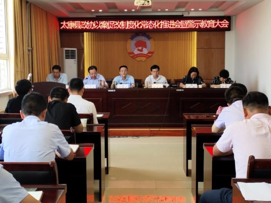 8月11日,太康縣政協(xié)召開深化以案促改制度化常態(tài)化推進會暨警示教育會??h政協(xié)主席、黨組書記王建林,縣政協(xié)副主席丁明禮、劉玲、王永剛、劉鳳芹及縣政協(xié)機關(guān)全體黨員干部參加了會議??h紀(jì)委監(jiān)委指導(dǎo)組親臨指導(dǎo)。
