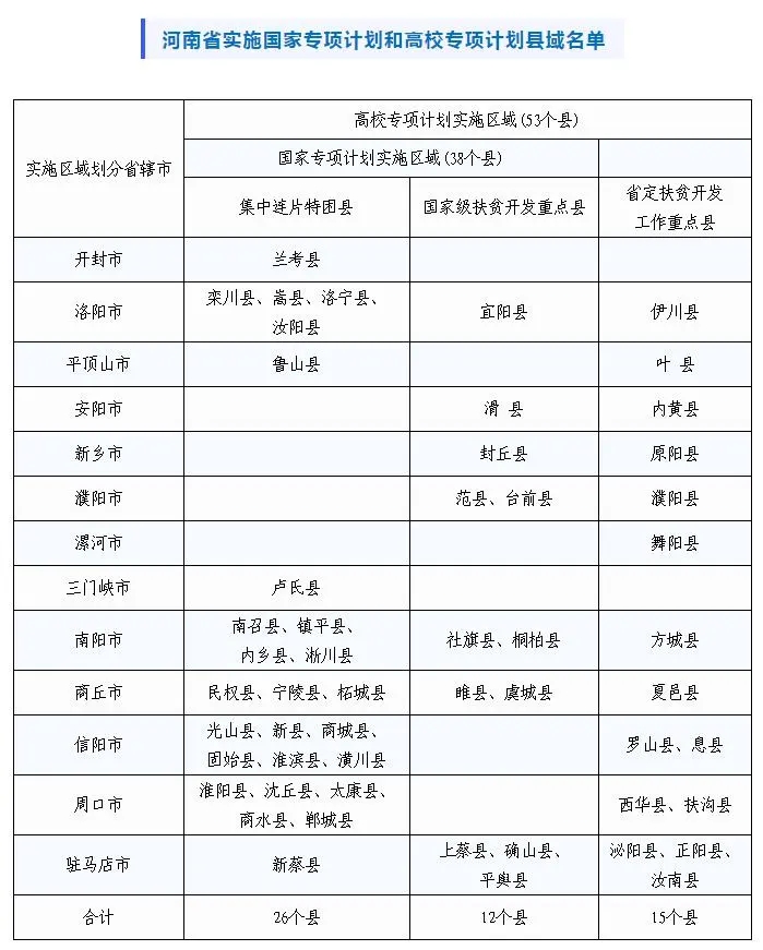 附件:河南省實(shí)施“國(guó)家專(zhuān)項(xiàng)計(jì)劃”和“高校專(zhuān)項(xiàng)計(jì)劃”縣域名單