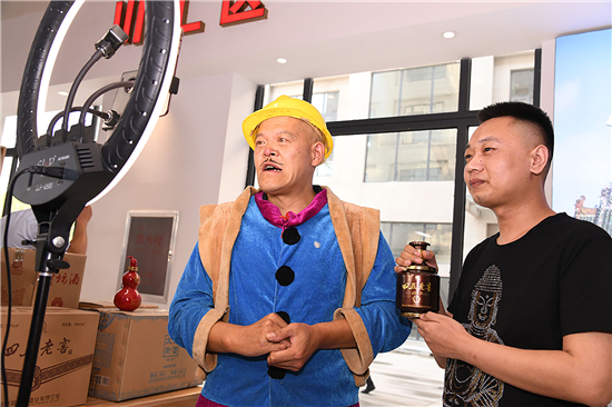 記者看到,川匯區(qū)直播電商產(chǎn)業(yè)基地直播大廳內(nèi),全市各個(gè)縣市區(qū)都在此設(shè)有土特產(chǎn)直播區(qū),川匯區(qū)賣(mài)的有伏羲貢酒等,淮陽(yáng)區(qū)賣(mài)的泥泥狗、布老虎、黃花菜、健身器具等,西華縣賣(mài)的有胡辣湯料等各種土特產(chǎn)。商家們“八仙過(guò)海,各顯神通”紛紛請(qǐng)來(lái)各路網(wǎng)紅大咖們助力直播。川匯區(qū)四五酒業(yè)請(qǐng)來(lái)“光頭強(qiáng)”熱賣(mài)四五老酒,西華縣的商家請(qǐng)來(lái)“趙本山”帶貨直播叫賣(mài)。