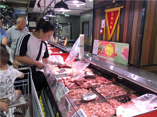 “太貴了,吃不起了,現(xiàn)在吃豬肉才是’土豪’的象征?!爆F(xiàn)在,豬肉價(jià)格已經(jīng)成了市民互相調(diào)侃的話題之一。近日,國家統(tǒng)計(jì)局河南調(diào)查總隊(duì)發(fā)布數(shù)據(jù)稱,7月份,河南居民消費(fèi)價(jià)格指數(shù)(CPI)同比上漲2.9%。豬肉價(jià)格繼續(xù)領(lǐng)漲,上漲87.2%。但記者走訪發(fā)現(xiàn),周口一些超市的豬肉價(jià)格不僅沒漲,反而有小幅下降。對此,周口業(yè)內(nèi)人士稱,周口區(qū)域的豬肉價(jià)格近一周之內(nèi)波動(dòng)不大,還會有小幅回落,但從長期來看,可能還會面臨上升趨勢。