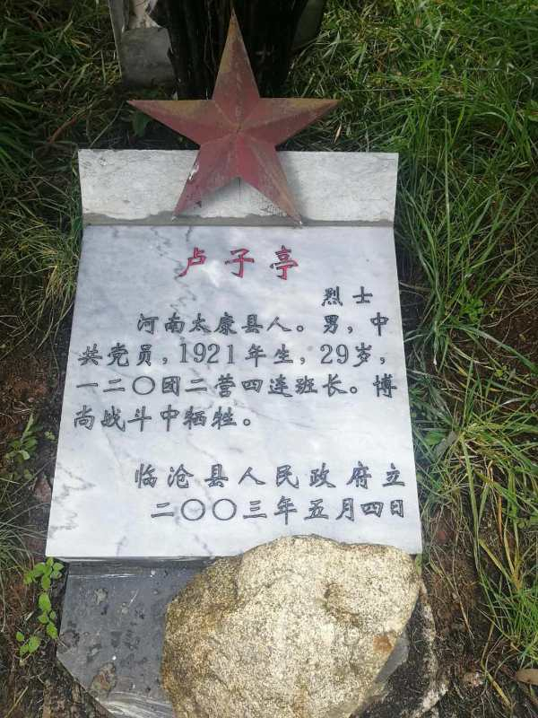 據(jù)悉,盧子亭,河南省周口市太康縣人,生于1921年,是一名中共黨員,是原云南軍區(qū)第14軍120團(tuán)二營(yíng)四連班長(zhǎng),1950年9月在云南省臨滄市臨翔區(qū)博尚戰(zhàn)斗中壯烈犧牲,年僅29歲。