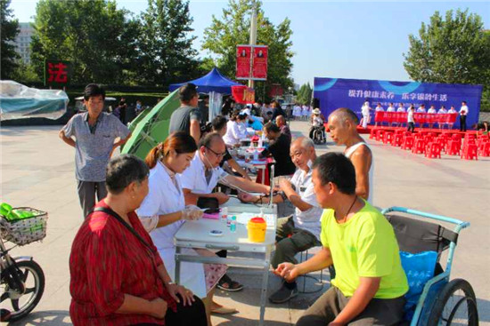 儀式現(xiàn)場(chǎng),多家單位負(fù)責(zé)人宣讀了“提升健康素養(yǎng) 樂(lè)享銀齡生活”倡議書(shū)。儀式結(jié)束后,現(xiàn)場(chǎng)舉行大型義診、健康咨詢(xún)、文藝表演等活動(dòng)。市、區(qū)醫(yī)療單位設(shè)立13個(gè)咨詢(xún)服務(wù)臺(tái),圍繞“提升健康素養(yǎng) 樂(lè)享銀齡生活”活動(dòng)主題,現(xiàn)場(chǎng)普及老年健康知識(shí),通過(guò)擺放健康知識(shí)展版、發(fā)放健康宣傳折頁(yè)、提供健康咨詢(xún)和現(xiàn)場(chǎng)義診服務(wù)等形式,為老年人提供量血壓、測(cè)血糖、測(cè)視力、等健康服務(wù)。針對(duì)常態(tài)化疫情防控中對(duì)老年人的生活照顧、健康管理、醫(yī)養(yǎng)結(jié)合、慢性病預(yù)防等內(nèi)容,結(jié)合老年人特點(diǎn),圍繞營(yíng)養(yǎng)膳食、運(yùn)動(dòng)健康、心理健康、合理用藥等方面展開(kāi)科普宣傳指導(dǎo),普及老年健康科學(xué)知識(shí)和老年健康相關(guān)政策。叮囑老人做好居家衛(wèi)生,出門(mén)戴口罩,做好個(gè)人防護(hù),并針對(duì)老年人常見(jiàn)的高血壓、糖尿病、冠心病等,給予健康評(píng)估和健康指導(dǎo),讓廣大老年人切身感受到社會(huì)的關(guān)懷和溫暖,提高了老年人的健康素養(yǎng),收到了良好的社會(huì)效果。