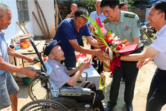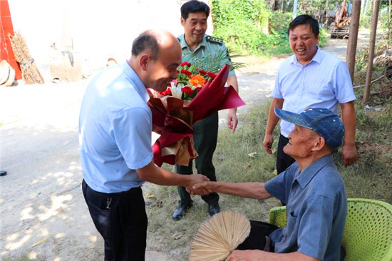 今年,是中國(guó)人民抗日戰(zhàn)爭(zhēng)暨世界反法西斯戰(zhàn)爭(zhēng)勝利75周年。太康縣委常委、縣人武部部長(zhǎng)于永前,縣退役軍人事務(wù)局黨組書(shū)記、局長(zhǎng)潘布道日前先后來(lái)到高賢、楊廟等鄉(xiāng)鎮(zhèn)走訪慰問(wèn)抗日老戰(zhàn)士,開(kāi)展“敬獻(xiàn)一束鮮花、表達(dá)一聲問(wèn)候、送上一份禮品、備一個(gè)健康包、拍一張合影留念照片”“五個(gè)一”活動(dòng),把黨和政府的關(guān)懷溫暖送到老戰(zhàn)士的心坎上。