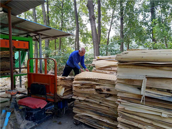 8月28日,商水縣練集鎮(zhèn)馬莊村的四紅木業(yè)有限公司板材加工車間內(nèi),機(jī)器轟鳴,工人忙著斷木、打圓、卷板,一張張板材被切割后,拉到曬板場(chǎng)晾曬?!坝辛诉@份收入,去年全家脫貧摘帽?!闭谲囬g里搬運(yùn)板材的馬莊村貧困戶王天林對(duì)記者說。