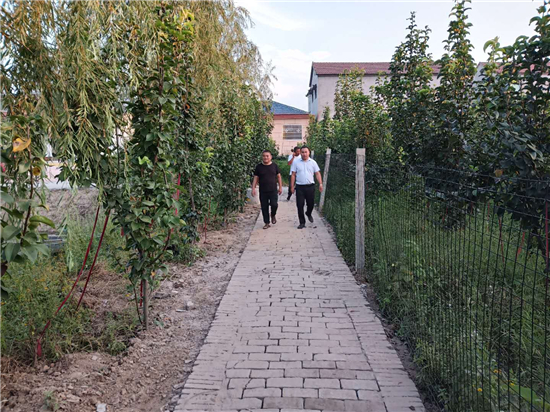 上任伊始,許天勇充分利用水域面積大的優(yōu)勢(shì),發(fā)展鄉(xiāng)村旅游經(jīng)濟(jì),把整理出來(lái)的水域種上了荷花,放上了魚(yú)苗,在村里還建起了四橦民宿建筑,在廣場(chǎng)邊村里統(tǒng)一管理的一處民宿內(nèi)興辦了特色餐飲,讓來(lái)這里垂釣的人有得玩、有得吃、還有得住。許天勇指著許莊村頭的一處坑塘說(shuō):“這是我們治理出來(lái)比較大的一處,鎮(zhèn)里牽頭在坑塘兩側(cè)建起了扶貧富民冷庫(kù),還建成1200多平方米的游園、近3000平方米的垂釣園,另外,村里又把平整出14.2畝土地種上的梨樹(shù),承包給村民進(jìn)行果蔬間作,現(xiàn)在梨樹(shù)已進(jìn)入盛果期,預(yù)計(jì)今年凈收益4萬(wàn)元左右?!?/p>