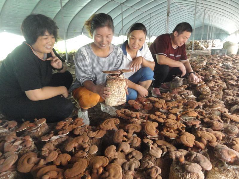 9月15日,商水縣黃寨鎮(zhèn)楊營村“蘑菇王”楊秀麗(左二)在蘑菇扶貧產(chǎn)業(yè)園里向食用菌種植戶傳授靈芝管理技術(shù)。近年來,黃寨鎮(zhèn)通過政策扶持、項目促動、培訓(xùn)指導(dǎo)等舉措,采用“合作社+基地+貧困戶”等模式,集種植、加工、銷售為一體,加快推進食用菌全產(chǎn)業(yè)鏈開發(fā),帶動了周邊300多人種植食用菌脫貧致富。喬連軍 攝
