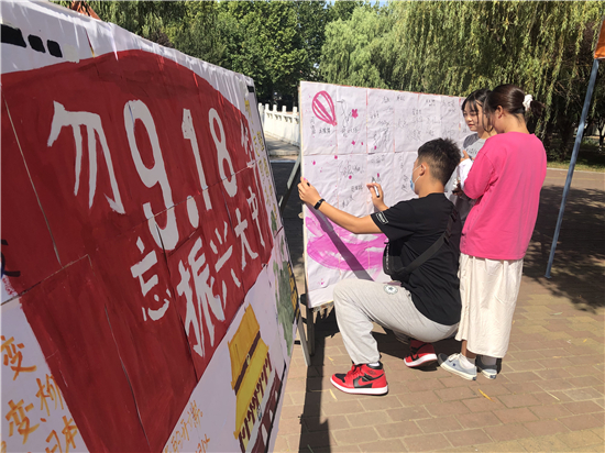 記者在河南科技職業(yè)大學(xué)看到,學(xué)校團(tuán)委組織各學(xué)院團(tuán)總支開(kāi)展“銘記九一八勿忘國(guó)恥”主題團(tuán)日活動(dòng),各級(jí)團(tuán)組織通過(guò)主題教育班會(huì)、簽名儀式等活動(dòng)重溫“九一八”歷史事件。河南科技職業(yè)大學(xué)團(tuán)委副書(shū)記劉曉娜表示,通過(guò)回顧這段歷史,同學(xué)們深刻體悟到了中華民族曾經(jīng)經(jīng)受的苦難和今天幸福生活的來(lái)之不易,以此激發(fā)同學(xué)們的責(zé)任感和愛(ài)國(guó)熱情,進(jìn)一步增強(qiáng)青年學(xué)子們的愛(ài)國(guó)主義意識(shí),讓大家銘記歷史,不忘初心、牢記使命,堅(jiān)定青年發(fā)奮圖強(qiáng)的理想信念,為實(shí)現(xiàn)中華民族偉大復(fù)興的中國(guó)夢(mèng)貢獻(xiàn)青春力量。