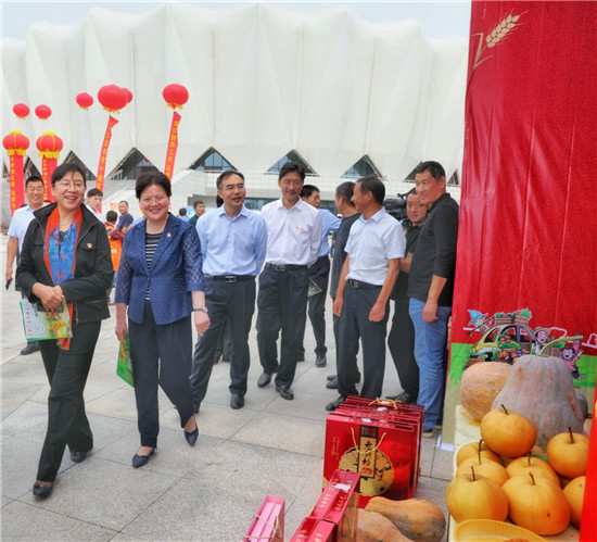 胡旭云在開幕式上致辭。她說,這是77萬扶溝人民分享收獲的盛會,展示了扶溝農(nóng)業(yè)的豐碩成果,她代表省農(nóng)業(yè)農(nóng)村廳向廣大農(nóng)民和奮戰(zhàn)在“三農(nóng)”一線的同志們表示誠摯的問候,對扶溝農(nóng)民豐收節(jié)的隆重舉行表示熱烈的祝賀。扶溝蔬菜種植歷史悠久,種植技術(shù)領(lǐng)先,規(guī)模集聚壯大,名優(yōu)產(chǎn)品眾多,蔬菜產(chǎn)業(yè)收入占全縣農(nóng)民人均純收入的37%,扶溝農(nóng)民找到了致富奔小康的金鑰匙。扶溝縣要認真貫徹落實習近平總書記關(guān)于“三農(nóng)”工作的重要論述,按照省委書記王國生調(diào)研扶溝講話要求,通過布局區(qū)域化、生產(chǎn)標準化、經(jīng)營規(guī)?;?、發(fā)展產(chǎn)業(yè)化、方式綠色化、產(chǎn)品品牌化,把扶溝蔬菜產(chǎn)業(yè)進一步做大做強做精,打造河南農(nóng)業(yè)的新亮點、河南蔬菜的優(yōu)質(zhì)品牌。