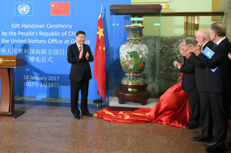 2017年1月18日,習近平主席出席中國向聯(lián)合國日內瓦總部贈禮儀式。