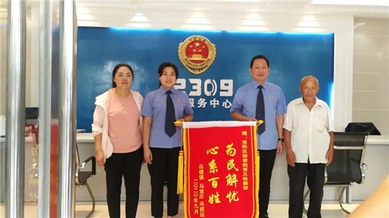 經(jīng)過勸說,雙方各自做出讓步,胡某某也很后悔自己動手打人的行為,率先表達歉意,并主動賠償2000元,馮某某對處理結(jié)果很滿意,雙方握手言和。事后,馮某某特地制作了一面“心系百姓、為民解憂”的錦旗,并送到淮陽人民區(qū)檢察院,以表達感謝之情。
