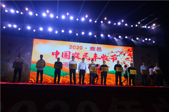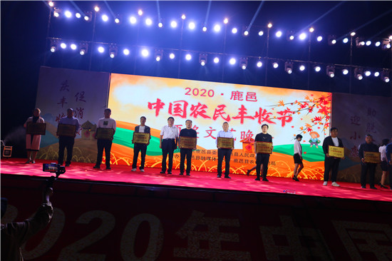 9月22日晚,由中共鹿邑縣委、鹿邑縣人民政府主辦的2020年鹿邑縣農(nóng)民豐收節(jié)文藝晚會在鹿邑縣文化中心廣場舉辦。晚會現(xiàn)場頒布了鹿邑縣“十佳家庭農(nóng)場”“十佳農(nóng)民合作社”“十佳特色農(nóng)產(chǎn)品品牌”“十佳返鄉(xiāng)創(chuàng)業(yè)脫貧致富帶頭人”“十佳脫貧致富先進個人”五項獎項,40名新型農(nóng)民(農(nóng)場、合作社)代表和10個特色農(nóng)產(chǎn)品品牌獲殊榮,他們用行動和產(chǎn)品充分展示了全縣現(xiàn)代農(nóng)業(yè)在過去一年中取得的輝煌成果。縣領(lǐng)導雷申、楊所超、侯自峰、王曉征、張國慶、肖西國等出席豐收節(jié)晚會,并為獲獎者頒發(fā)榮譽證書和獎牌。