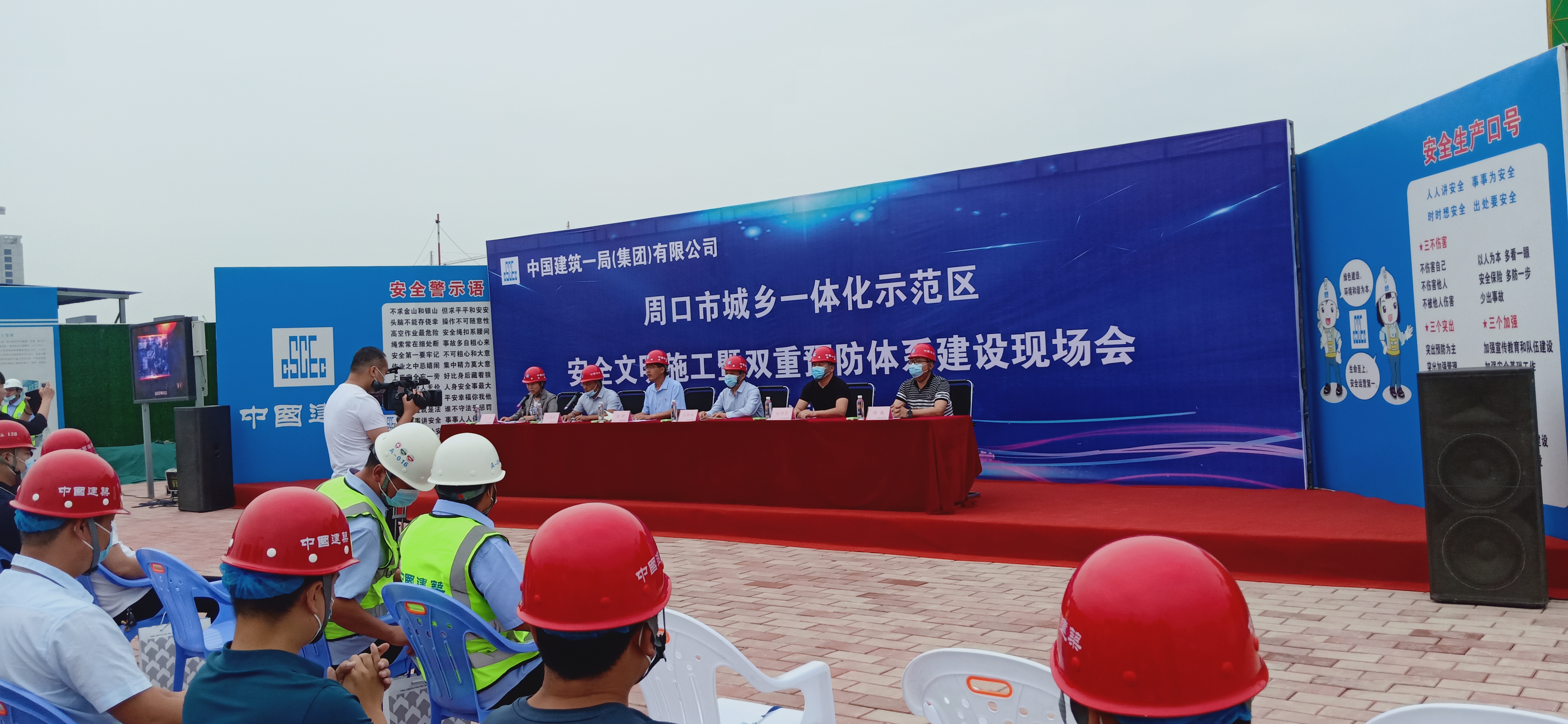 9月29日上午,周口市城鄉(xiāng)一體化示范區(qū)建筑行業(yè)安全文明施工暨雙重預(yù)防體系建設(shè)現(xiàn)場觀摩會(huì)在中建一局周口寧和家園A區(qū)項(xiàng)目地順利舉行。市應(yīng)急管理局副局長張群峰、市城鄉(xiāng)一體化示范區(qū)管委會(huì)副主任張曉、示范區(qū)住建局局長閆國政、示范區(qū)應(yīng)急管理局局長劉靖等相關(guān)領(lǐng)導(dǎo)與67家建筑單位代表300余人共同參加此次現(xiàn)場觀摩會(huì)。