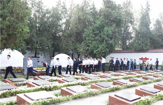 羅文閣緩步上前,代表縣四個班子仔細(xì)整理緞帶。全體人員面向烈士紀(jì)念碑行三鞠躬禮,并深情瞻仰烈士陵園,向英雄烈士獻(xiàn)上鮮花,表達(dá)對烈士的無限敬仰和哀思。①15