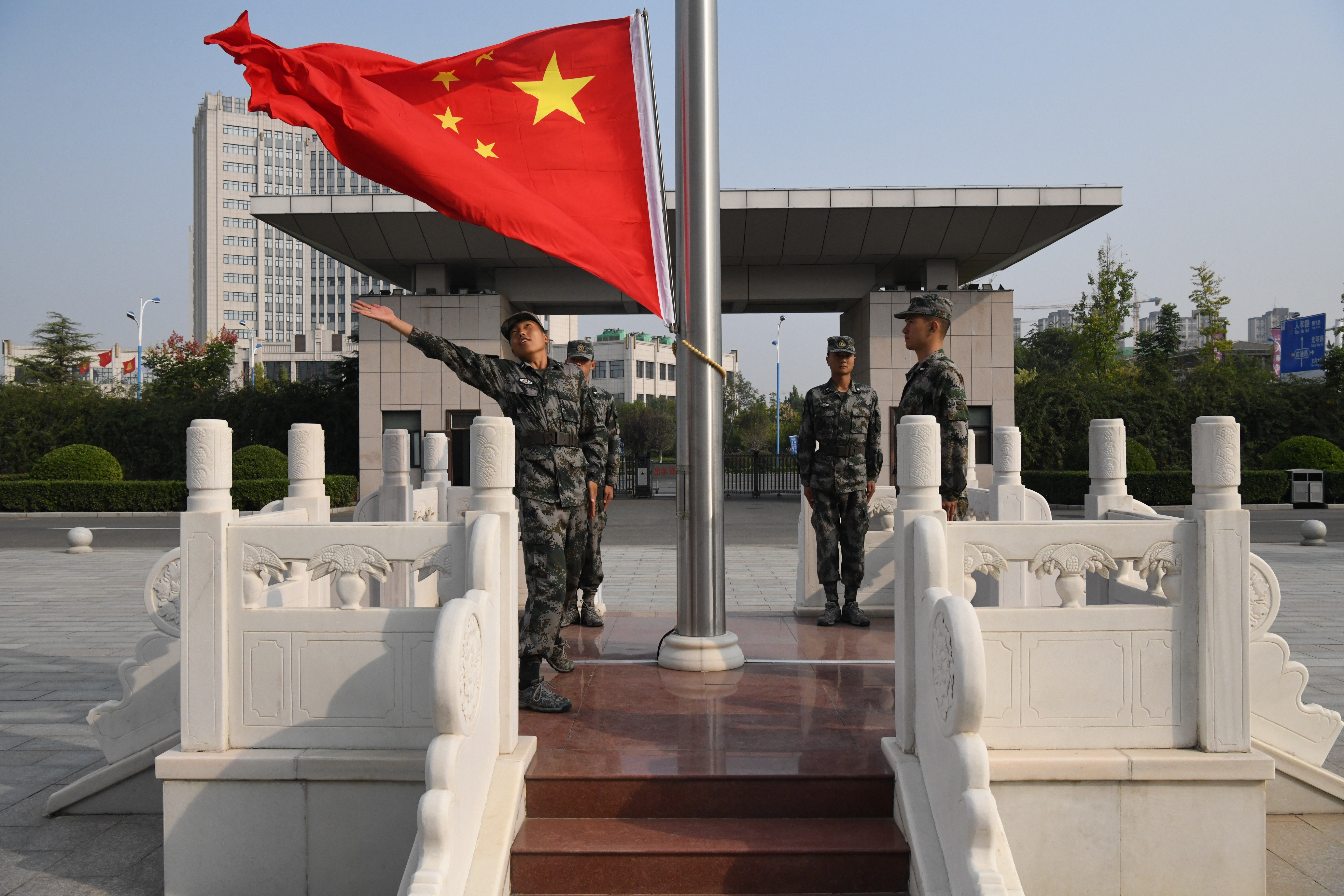 國旗飄揚激發(fā)革命斗志,軍歌嘹亮詮釋忠誠誓言。10月1日上午,周口軍分區(qū)舉行升國旗儀式慶祝中華人民共和國71周年華誕。來自周口軍分區(qū)機關(guān)、市民兵武器裝備倉庫的全體官兵職工、文職人員80人參加了儀式。周口軍分區(qū)司令員湯維政主持儀式。當日8時許,全體官兵在軍分區(qū)機關(guān)營區(qū)升旗臺前整齊列隊,精神飽滿,士氣昂揚,帶著對祖國最熱忱的祝福,帶著對生活最美好的憧憬,等待著最莊嚴時刻的到來。隨著一聲“迎國旗”的洪亮口令,英姿颯爽的4名護旗手邁著鏗鏘有力的步伐護送國旗走向升旗臺。伴隨著雄壯的《義勇軍進行曲》,升旗手抬手振臂,鮮艷的五星紅旗迎風(fēng)展開,在官兵們的注目下冉冉升起。