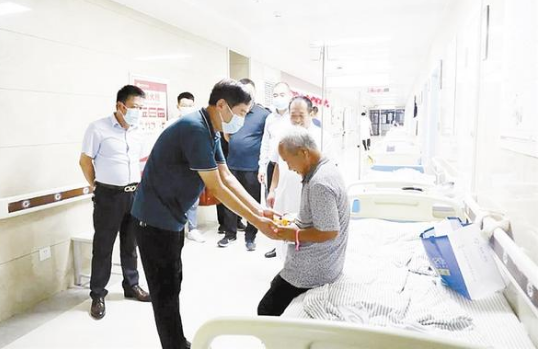 “雙節(jié)”當(dāng)天,鄲城縣第二醫(yī)健集團(tuán)縣中醫(yī)院院長(zhǎng)水新華,副院長(zhǎng)史昊、仵好金、崔冬一行分別到臨床、醫(yī)技等科室慰問(wèn)節(jié)日值班人員和住院患者,轉(zhuǎn)達(dá)了鄲城縣衛(wèi)健委黨組書記、主任付登霄對(duì)大家的節(jié)日祝福,并向“援鄂英雄”胡奔奔送去節(jié)日慰問(wèn),向住院患者送去月餅和祝福。記者 徐松 通訊員 張洋 攝